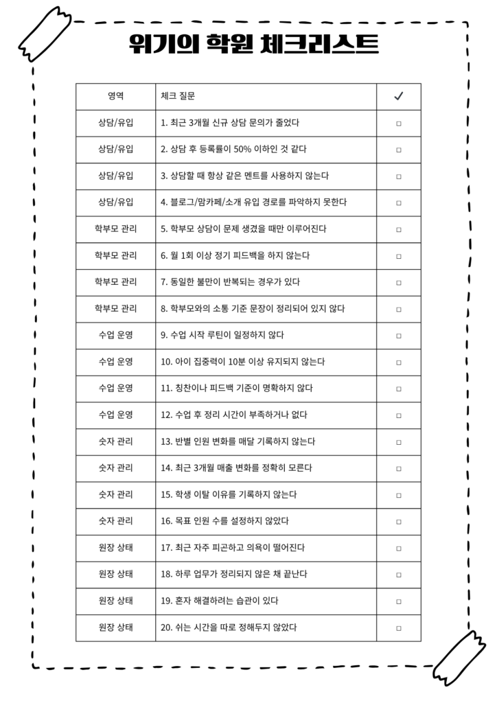 ✅ 망하는 학원의 징조 체크리스트 20가지